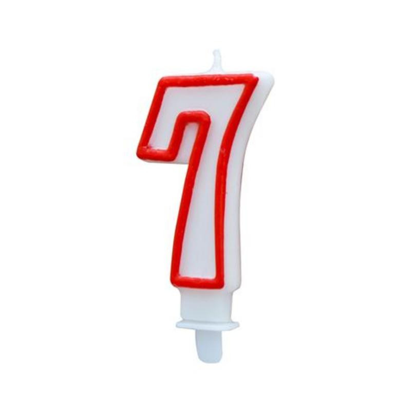Añade un toque distintivo y festivo a tus celebraciones con la vela Algon de número 7. Diseñada para destacar, esta vela presenta un color base blanco puro, elegantemente adornado con detalles en rojo vibrante, que capturarán la atención y complementarán a la perfección la decoración de cualquier evento.