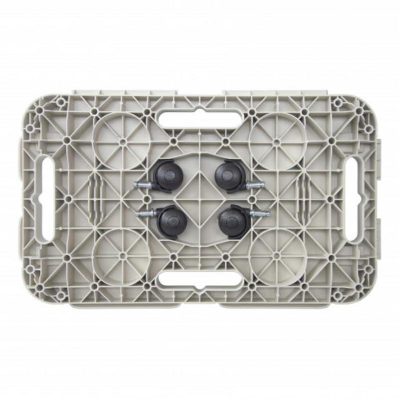 Fabricada en polipropileno de alta resistencia, garantiza durabilidad y estabilidad incluso bajo cargas significativas. Su perfil bajo y sus dimensiones compactas la hacen discreta y fácil de almacenar, mientras que su gran capacidad de carga la convierte en una herramienta versátil para diversas necesidades de transporte.