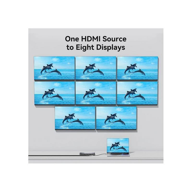 El divisor HDMI Vention AKQB0-EU es la solución perfecta para distribuir una señal HDMI 2.0 4K a hasta 8 pantallas simultáneamente. Este dispositivo asegura una transmisión de alta calidad, ideal para presentaciones profesionales, entornos de entretenimiento en el hogar y aplicaciones comerciales.