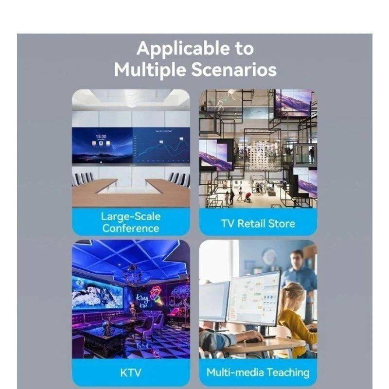 Este divisor garantiza una distribución eficiente y confiable de la señal HDMI, manteniendo la integridad de la imagen y el sonido en todas las pantallas conectadas.
