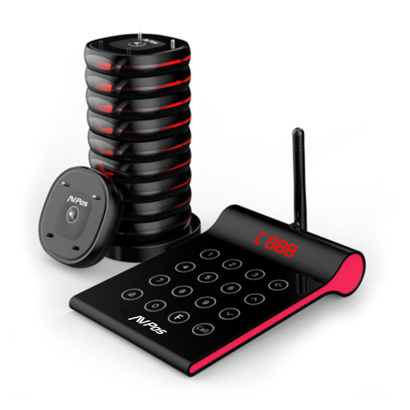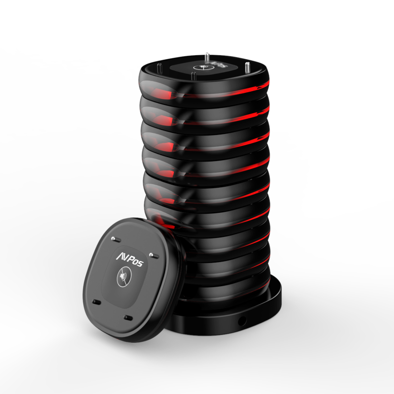 Optimiza la atención al cliente en tu negocio con el sistema de avisador de clientes AVPOS. Este completo kit incluye 10 unidades de avisadores, una base de carga para mantenerlos siempre listos y un teclado para una gestión sencilla de los turnos.