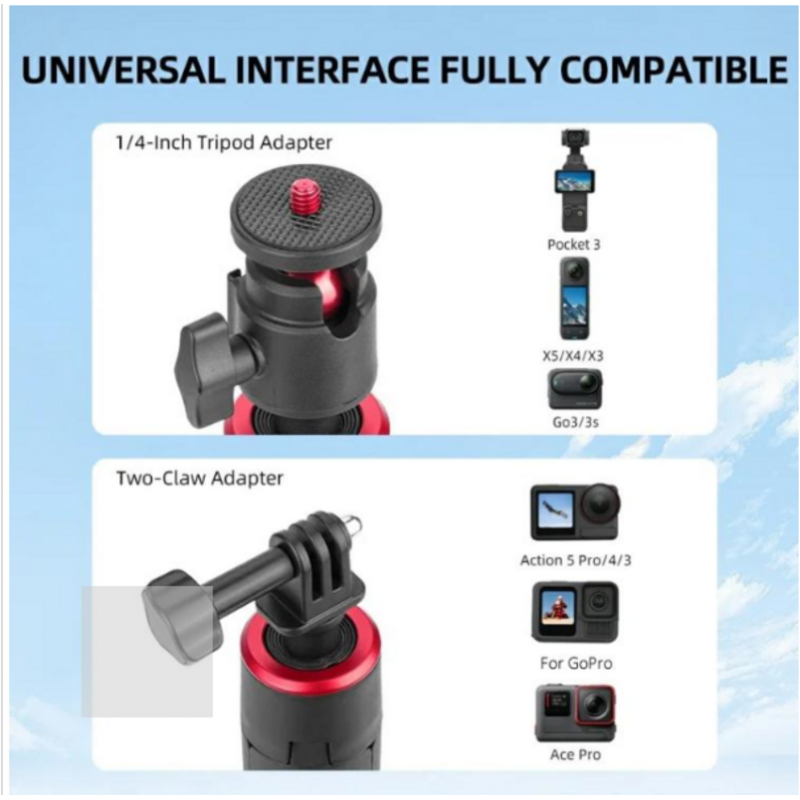 - Compatibilidad Universal: Diseñado para adaptarse perfectamente a una amplia gama de dispositivos, incluyendo cámaras GoPro, Insta360, drones DJI y cualquier teléfono móvil.