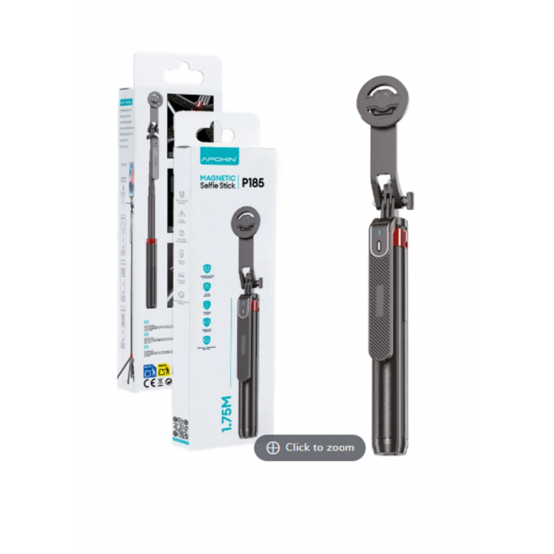 El palo selfie Apokin P185 es el compañero perfecto para creadores de contenido y entusiastas de la fotografía móvil. Su diseño magnético asegura una sujeción firme de tu smartphone, mientras que el trípode integrado te brinda estabilidad para fotos grupales o videos estáticos.