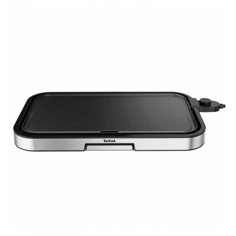 Su amplia superficie de cocción de 550 x 304 mm, equipada con un revestimiento antiadherente de alta calidad, permite cocinar para toda la familia sin que los alimentos se peguen. El termostato ajustable, con 5 niveles de potencia, te brinda el control preciso necesario para cocinar carnes, pescados, verduras y mucho más, siempre a la temperatura ideal.