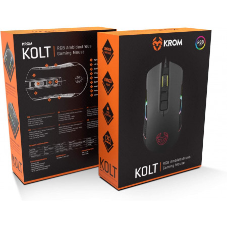 Fruto de la tecnología que te ofrece la mejor precisión y de un diseño versátil y ambidiestro llega el ratón Krom Kolt, el arma imprescindible para traducir toda tu estrategia y movimientos de manera inmediata a la pantalla.