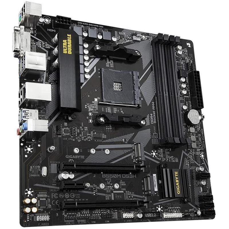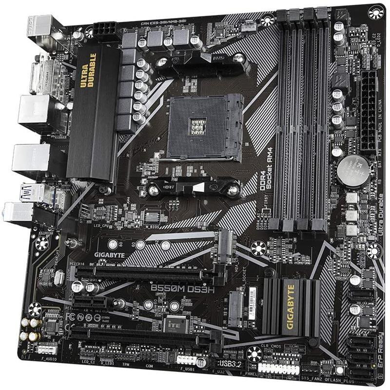 EAN 4719331809416La placa base Gigabyte B550M DS3H es una solución robusta y eficiente para construir tu PC gaming o de alto rendimiento. Diseñada con el chipset AMD B550, esta placa ofrece una gran durabilidad y un rendimiento optimizado para los procesadores AMD Ryzen.