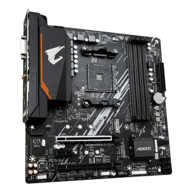 La placa base Gigabyte B550M Aorus Elite AX ofrece un rendimiento excepcional y una conectividad avanzada para equipos gaming, estaciones de trabajo y workstations. Compatible con procesadores AMD Ryzen de las series 3000, 4000 y 5000, esta placa MicroATX maximiza el potencial de tu sistema.
