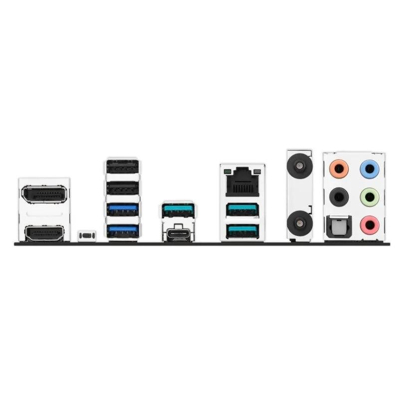 | 4 x USB 10Gbps ports (3 x Type-A + 1 x USB Type-C®), 2 x USB 5Gbps ports (2 x Type-A), 2 x USB 2.0 ports (2 x Type-A), 1 x DisplayPort, 1 x HDMI port, 1 x Wi-Fi Module, 1 x Realtek 2.5Gb Ethernet port, 5 x Audio jacks, 1 x Optical S/PDIF out port, 1 x BIOS FlashBack™ button |