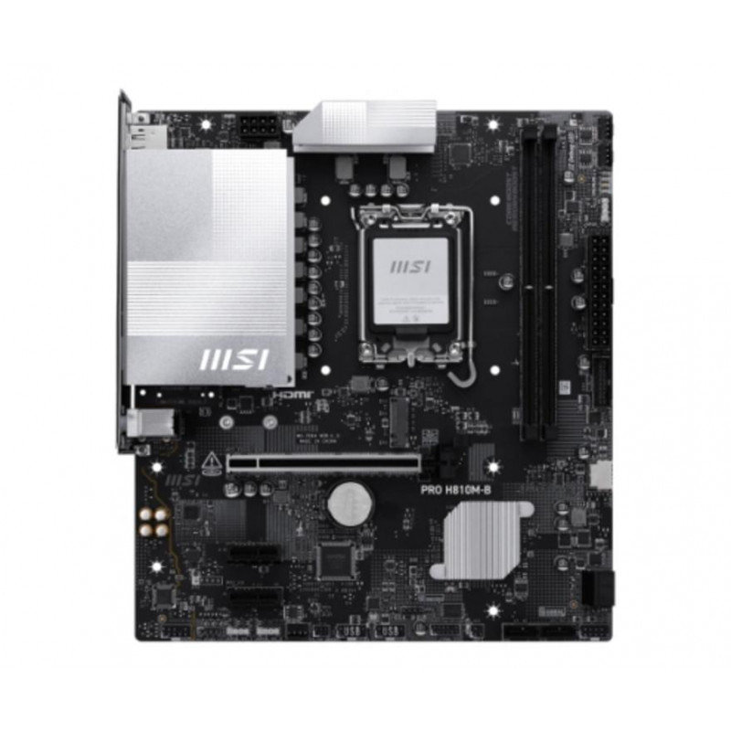 La placa base MSI PRO H810M-B está diseñada para ofrecer una plataforma robusta y eficiente para la última generación de procesadores Intel. Con soporte para el socket LGA 1851 y los procesadores Intel Core Ultra (Series 2), esta placa es la base perfecta para construir un sistema de alto rendimiento, ya sea para trabajo, estudio o entretenimiento.