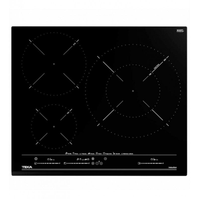 - Zonas de cocción versátiles: Cuenta con tres zonas de cocción, incluyendo una placa de Ø 150 mm, una de Ø 215 mm con sensores de temperatura, y una innovadora placa de doble circuito de Ø 180 / 320 mm, perfecta para paellas y recipientes grandes gracias a su Zona Paellera XL.