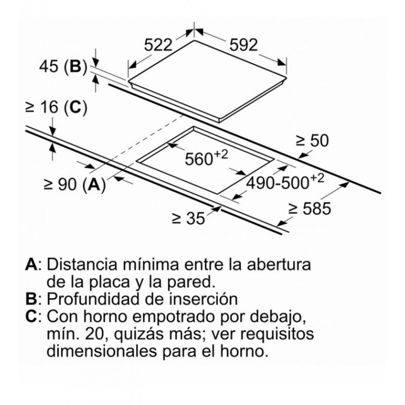 | Ancho de encastre | 560 mm |