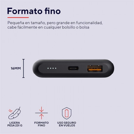 Power Delivery de 20W: La tecnología Power Delivery de 20W permite cargar dispositivos más rápido que con una batería externa convencional, y también facilita una recarga más rápida de la propia powerbank.