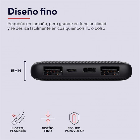 La Trust Primo Slim Powerbank te ofrece una solución de carga portátil y eficiente. Con una capacidad de 10000 mAh, esta batería externa ultradelgada te permite cargar tus dispositivos móviles rápidamente mientras te desplazas. Su diseño compacto y ligero la hace ideal para llevarla contigo a cualquier lugar.