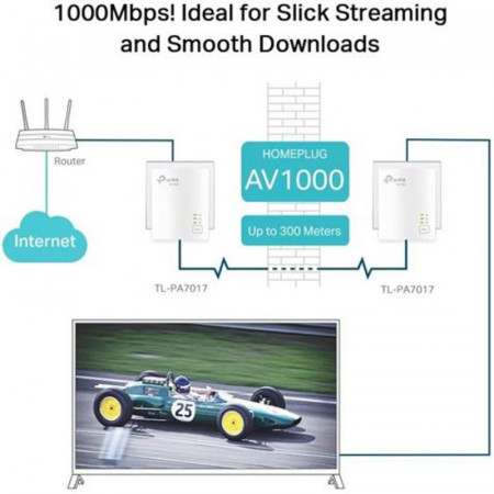 El Kit de Adaptadores PLC Powerline Gigabit TP-Link TL-PA7017KIT te permite extender tu red doméstica a través del cableado eléctrico existente de tu hogar, eliminando las zonas sin cobertura Wi-Fi y la necesidad de tender cables Ethernet. Con la avanzada tecnología HomePlug AV2, este kit proporciona velocidades de transferencia de datos por línea eléctrica de hasta 1000 Mbps, asegurando un rendimiento óptimo para todas tus actividades online, desde la transmisión de vídeo en 4K hasta los videojuegos más exigentes.