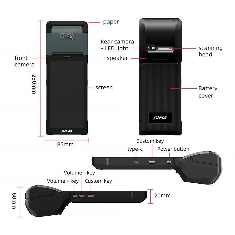 El AVPOS TC600 es un dispositivo PDA robusto y versátil, diseñado para optimizar tareas de escaneo, impresión y gestión de datos en diversos entornos. Con una pantalla de 6 pulgadas, ofrece una visualización clara y cómoda para todas tus operaciones.