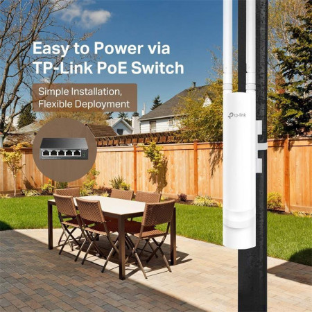 EAN 6935364083571El TP-Link Omada EAP225-Outdoor es un punto de acceso inalámbrico diseñado para ofrecer una conectividad robusta y de alta velocidad tanto en interiores como en exteriores. Con su diseño resistente a la intemperie y tecnología avanzada, es ideal para una variedad de entornos, desde jardines y terrazas hasta oficinas y campus.