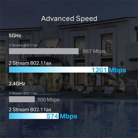 - Wi-Fi 6 de Velocidad Ultrarrápida: Hasta 1775 Mbps con velocidades simultáneas de 574 Mbps en 2.4 GHz y 1201 Mbps en 5 GHz.