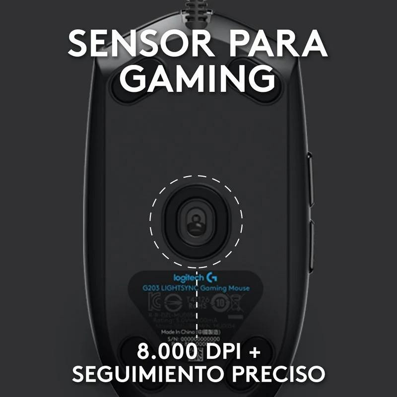 - Sensor para juegos de alta precisión con sensibilidad ajustable de 200 a 8.000 DPI.