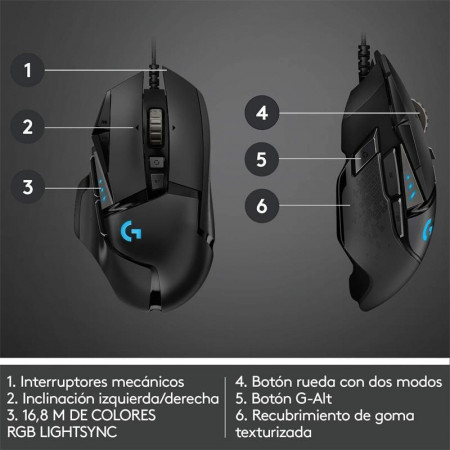 - Iluminación RGB LIGHTSYNC: Elige entre una amplia gama de colores y efectos para que tu ratón combine con tu estilo.