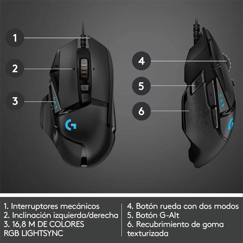 El G502 HERO te permite crear perfiles personalizados para tus juegos, con valores de sensibilidad ajustables entre 200 y 16.000 dpi. Su diseño ergonómico y sus materiales de alta calidad garantizan una comodidad excepcional durante largas sesiones de juego.