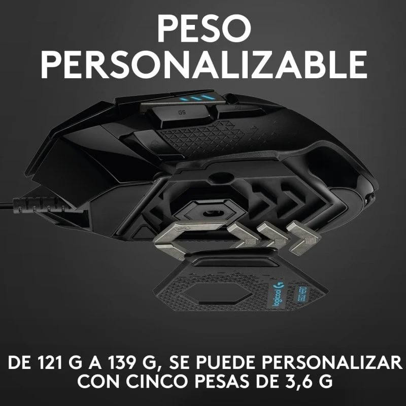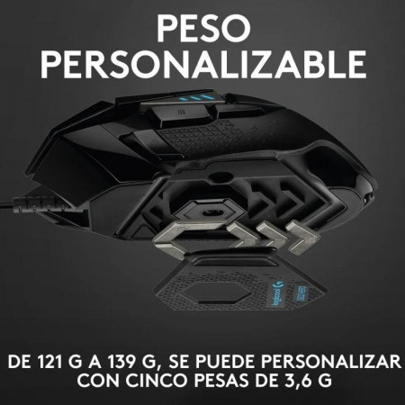 - Sistema de pesas ajustable: Personaliza el peso y el equilibrio de tu ratón con hasta cinco pesas de 3,6 g cada una, adaptándose a tu agarre y estilo de juego.