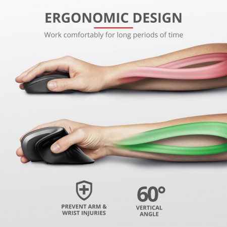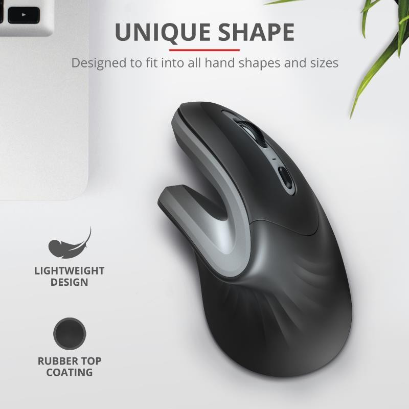 El Trust Verro es un ratón inalámbrico ergonómico diseñado para proporcionar la máxima comodidad durante largas jornadas de trabajo. Su diseño vertical único ayuda a reducir la tensión en la muñeca y el brazo, previniendo lesiones y mejorando la postura.