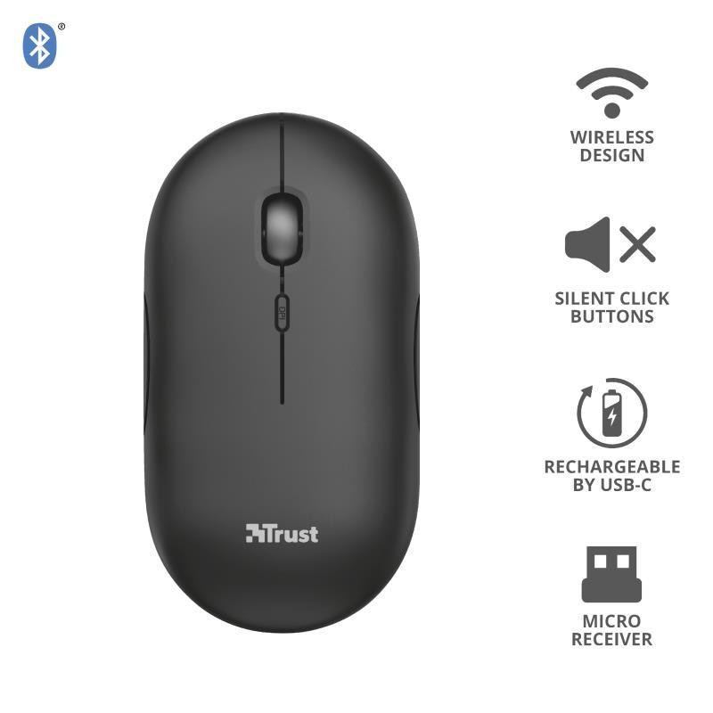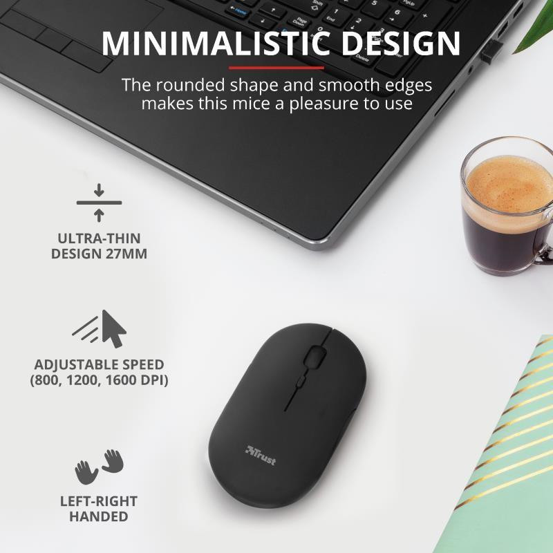 El Trust Puck es un ratón inalámbrico diseñado para ofrecer la máxima portabilidad y funcionalidad. Su diseño ultraplano y ligero lo convierte en el compañero ideal para llevarlo a cualquier parte, sin sacrificar la comodidad y eficiencia en el trabajo o el ocio.
