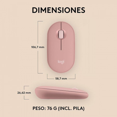 Con el botón Easy-Switch, puedes alternar fácilmente entre 3 dispositivos conectados. Ya sea tu ordenador portátil, tablet o PC de escritorio, el Pebble Mouse 2 M350s te permite cambiar de uno a otro con solo pulsar un botón.