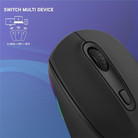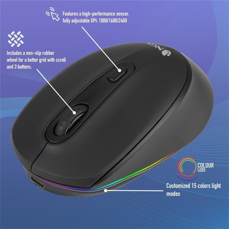 El ratón NGS Smog es la solución perfecta para aquellos que buscan un ratón versátil y cómodo. Este ratón inalámbrico recargable cuenta con triple conectividad, lo que le permite conectarse a tres dispositivos diferentes a la vez a través de Bluetooth (BT3.0 + BT5.0) y conexión inalámbrica de 2.4 GHz. Cambia rápidamente entre tus dispositivos con solo presionar un botón.