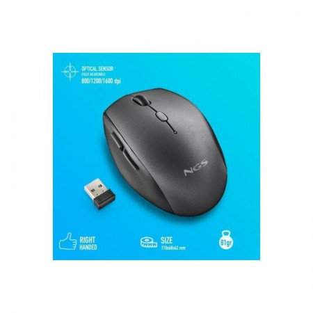 El NGS Bee Black es un ratón inalámbrico ergonómico que combina comodidad y funcionalidad para usuarios de portátiles y ordenadores de sobremesa. Su diseño ha sido cuidadosamente pensado para ofrecer un uso prolongado sin fatiga, ideal para el trabajo diario o el estudio.