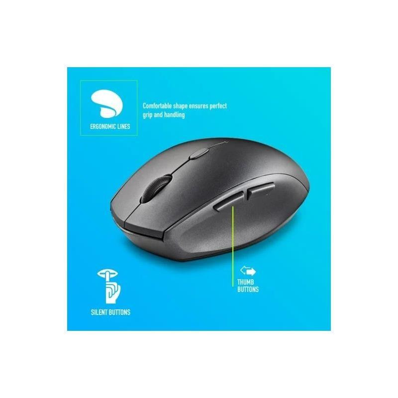 Este ratón destaca por sus 5 botones silenciosos, que reducen el ruido de los clics en al menos un 95%, creando un entorno de trabajo más tranquilo. Además, incorpora dos botones adicionales convenientemente ubicados en la zona del pulgar, facilitando la navegación para retroceder y avanzar en documentos o páginas web.