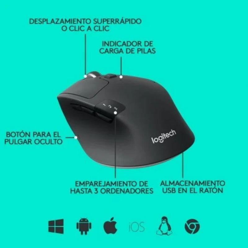- Multidispositivo con Logitech FLOW: Desplaza el cursor, textos, imágenes y archivos entre 3 computadoras. Navega fácilmente entre ellas con solo tocar un botón.