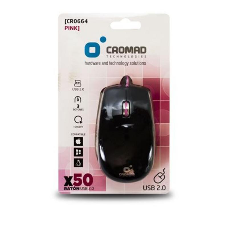 El ratón con cable Cromad X50 en color negro y rosa es la elección perfecta para quienes buscan funcionalidad y comodidad en un periférico esencial. Su diseño ergonómico se adapta a la mano, proporcionando un agarre confortable incluso durante largas sesiones de uso, ya sea para trabajo, estudio o navegación diaria.