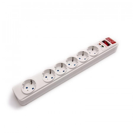 - 6 Salidas Schuko: Permite conectar hasta 6 dispositivos simultáneamente.