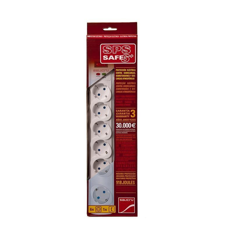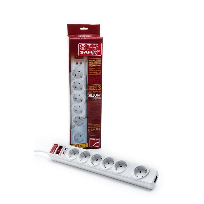 La regleta Salicru SPS Safe 6+ es la solución ideal para proteger tus equipos electrónicos de sobretensiones y picos de corriente. Con 6 salidas Schuko orientadas para facilitar la conexión de diferentes dispositivos, esta regleta ofrece una protección completa y segura para tu hogar u oficina.