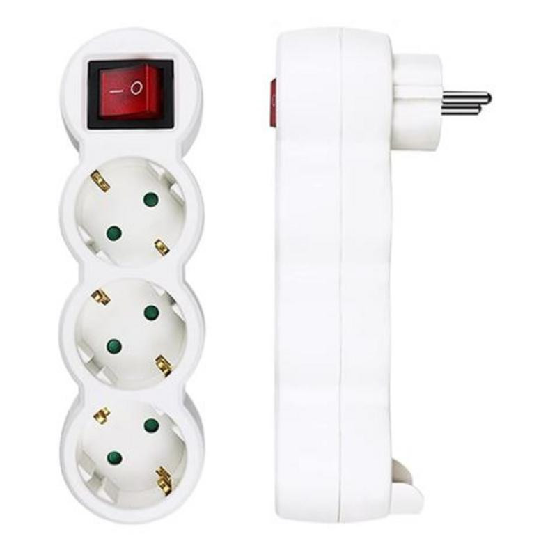 - Triple Conexión Schuko: Equipada con 3 tomas tipo Schuko, permite conectar múltiples dispositivos simultáneamente de forma segura.