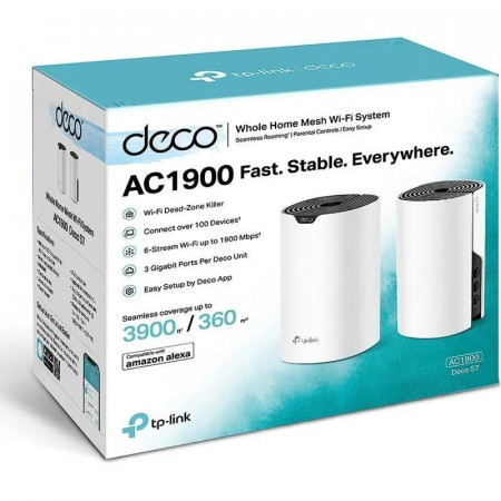 El sistema Wi-Fi Mesh TP-Link Deco S7 es la solución ideal para eliminar las zonas muertas y disfrutar de una conexión estable y de alta velocidad en toda tu casa. Este pack de 2 unidades Deco S7 proporciona una cobertura amplia y un rendimiento excepcional, gracias a la tecnología Wi-Fi AC1900.