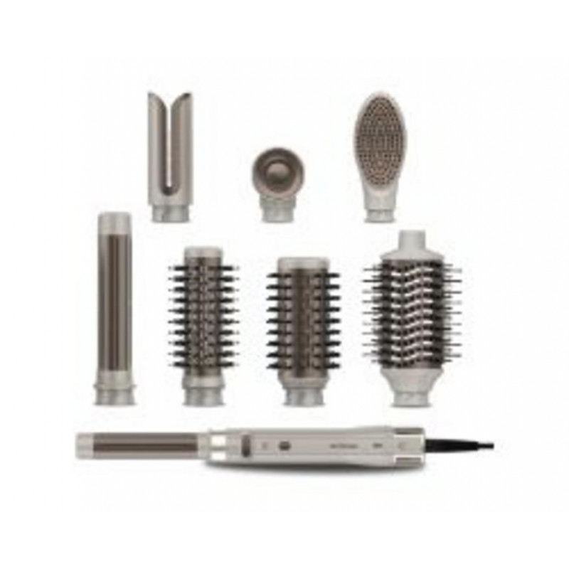 Consigue un look perfecto con el moldeador Ceotec CeramicCare 8in1 AirGlam Gyro Champagne. Incluye 8 cabezales para alisar, moldear y rizar tu cabello. Cuenta con motor brushless, función rotativa y revestimiento de cerámica y queratina.