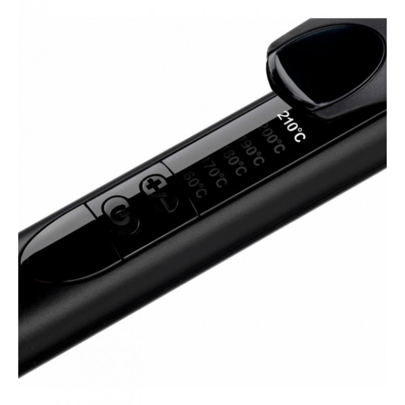 - 6 Ajustes de Temperatura: Desde 160°C hasta 210°C, adaptándose a todo tipo de cabello, desde fino hasta grueso.