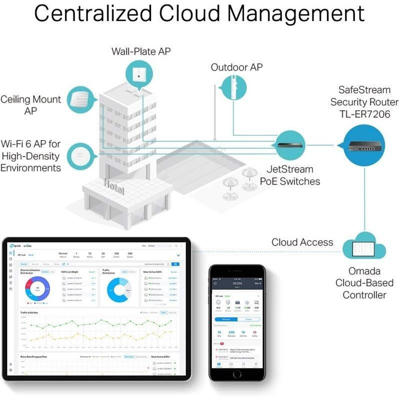 - Integración con Omada SDN para una gestión centralizada y monitorización inteligente.