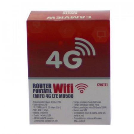 Mantente conectado en todo momento y en cualquier lugar con el router MiFi portátil Camview MR500. Este dispositivo compacto y potente te ofrece la libertad de llevar tu conexión a internet a donde vayas, simplemente insertando tu tarjeta SIM de datos. Es ideal para viajes, teletrabajo o para aquellos que necesitan una conexión fiable sin ataduras.