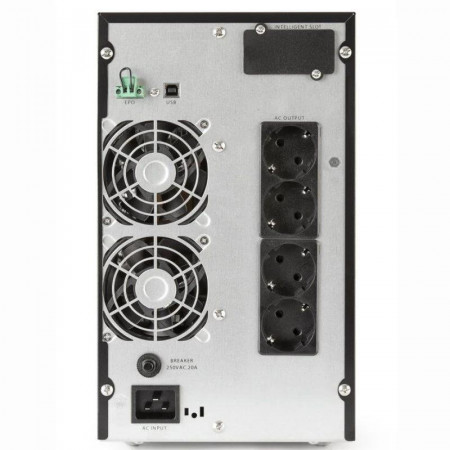 Diseñado en un práctico formato torre, el SLC TWIN PRO2 2000VA se integra perfectamente en entornos de oficina o servidores, proporcionando una potencia nominal de 2000 VA y 1800 W con un factor de potencia de salida de 0,9. Su interfaz intuitiva con pantalla LCD y teclado facilita la monitorización y el control en tiempo real del estado del SAI.