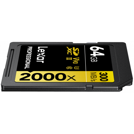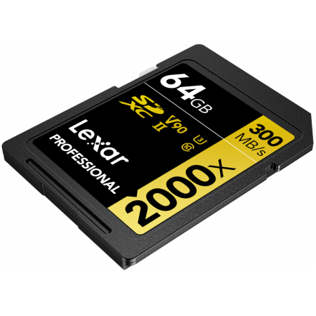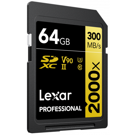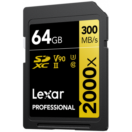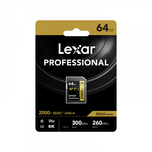 La tarjeta SDXC UHS-II V90 de la serie Lexar Professional Gold de 64GB ofrece un rendimiento excepcional para profesionales de la fotografía y el vídeo. Con una capacidad de almacenamiento de 64GB, esta tarjeta te permite capturar y guardar una gran cantidad de imágenes de alta resolución y vídeos en 4K.