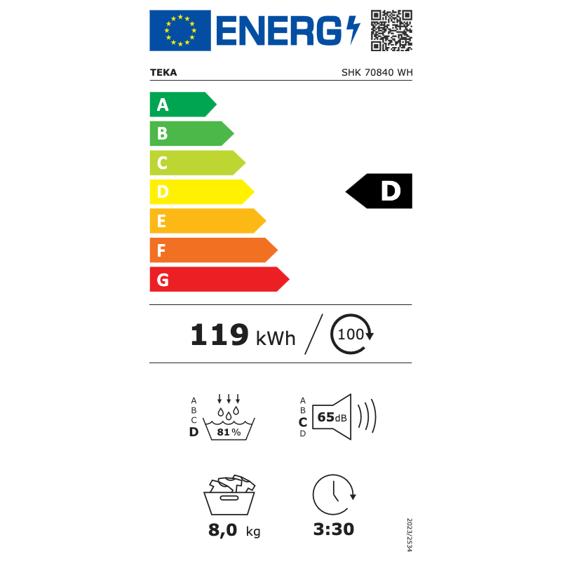 La secadora Teka SHK 70840 D redefine el secado de la ropa, combinando alta eficiencia con prestaciones innovadoras. Su capacidad de 8 kg es perfecta para las necesidades de cualquier hogar, asegurando que tus prendas queden suaves y listas para usar con el menor esfuerzo.
