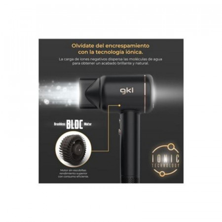 Experimenta un secado de cabello superior con el secador profesional GKL. Este avanzado dispositivo está equipado con un motor Brushless de alta durabilidad y eficiencia, garantizando un rendimiento potente y silencioso para un peinado rápido y eficaz. Su diseño innovador no solo es compacto y optimizado, sino también ultraligero, lo que reduce la fatiga durante el uso prolongado y facilita su manejo.