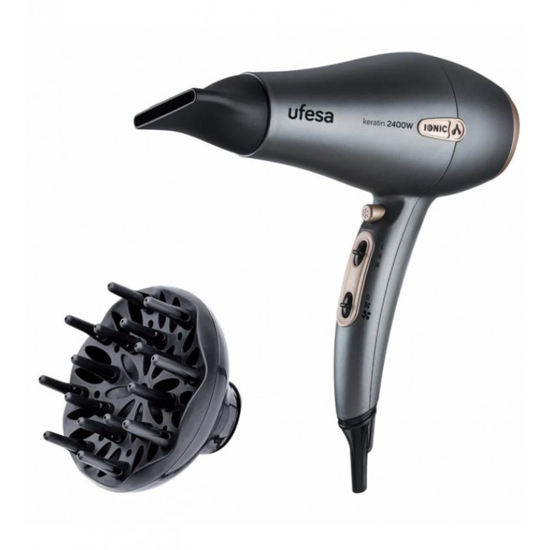 El secador de pelo profesional Ufesa SC8470 Keratin está diseñado para ofrecerte un cabello sano y un acabado perfecto con cada uso. Su innovadora rejilla, con un revestimiento de cerámica y queratina, garantiza un calentamiento rápido y una distribución uniforme del calor, aportando una suavidad y un brillo extra que hacen que tu pelo luzca más sano y con un aspecto profesional.