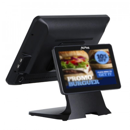 - Incluye segunda pantalla para una mejor interacción con el cliente.