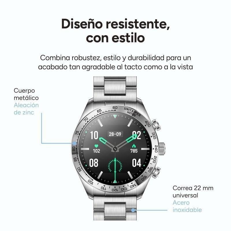 - Conectividad Bluetooth: Recibe y realiza llamadas, gestiona notificaciones y controla tu música directamente desde tu muñeca.