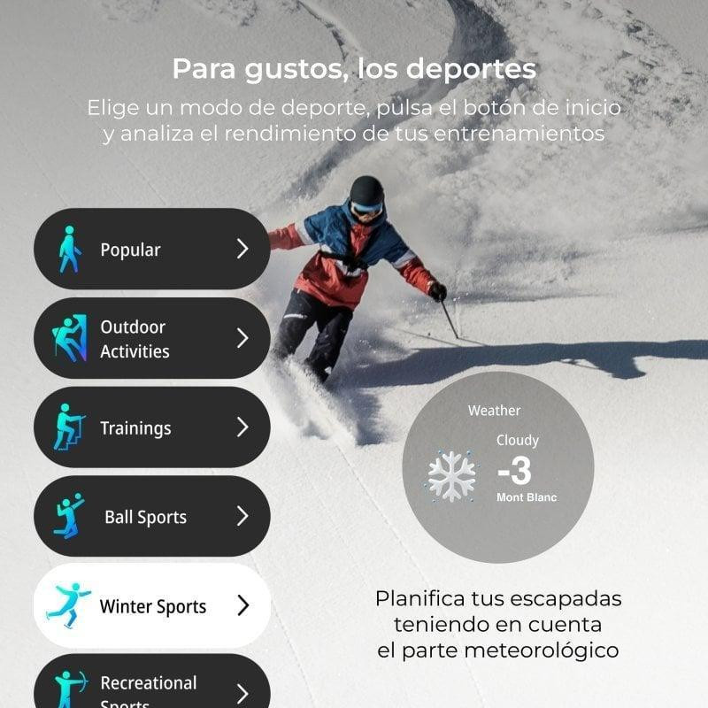 - Monitorización de salud avanzada (SpO2, frecuencia cardíaca, sueño, etc.)