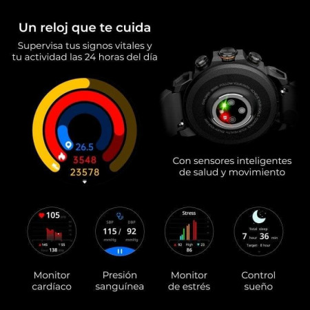 Con GPS integrado, registra y navega tus rutas de senderismo, ciclismo o deportes de montaña. Almacena tus trayectos en la app Smart-Time Pro para su posterior visualización y análisis. Disfruta de más de 100 modos deportivos que abarcan desde trail running hasta deportes acuáticos como surf o paddle surf, respaldados por una resistencia al agua de 5ATM. Además, cuenta con brújula, altímetro y barómetro, herramientas esenciales para explorar zonas remotas.